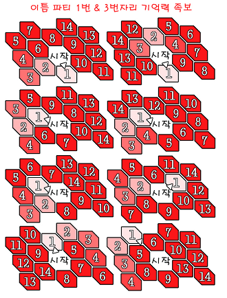 2. 记忆力 (根据脚板闪烁的顺序移动,若失败会扣大量HP。顺序图集1、顺序图集2)